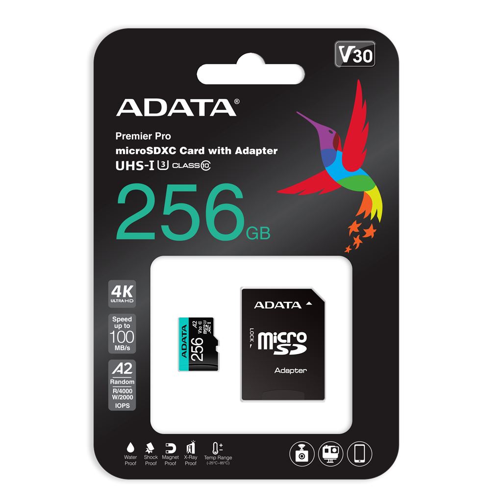 256GB microSDXC ADATA Premier Pro CL10 V30 A2 + adapter (AUSDX256GUI3V30SA2-RA1)