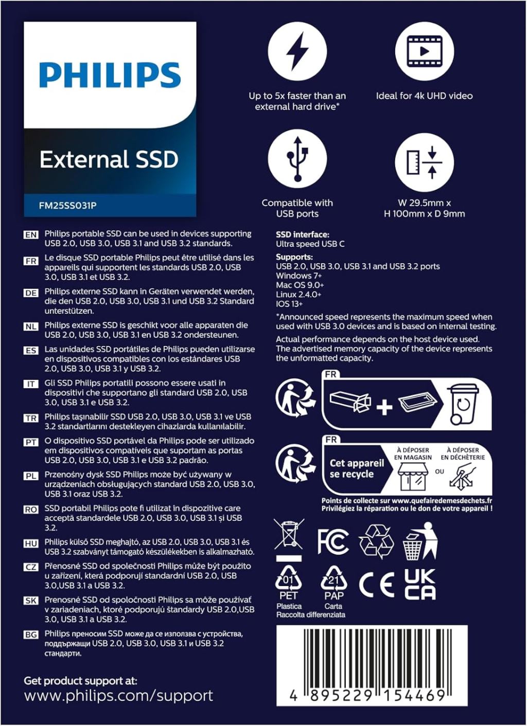 250GB Philips Ultra Speed külső SSD meghajtó (FM25SS031P/00)