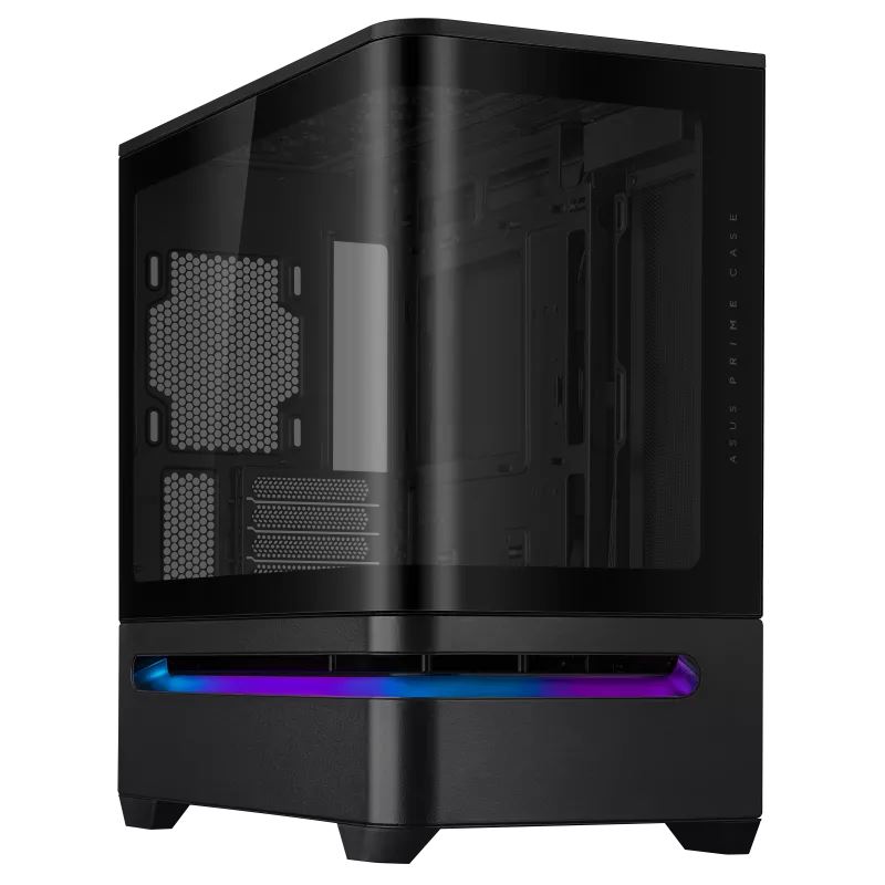 Az ASUS Prime AP202 ház a modern PC-építők igényeit szem előtt tartva készült. Az ívelt edzett üvegpanel a fronttól egészen az oldalpanelig fut, így szinte teljes panorámát biztosít a komponensekre. Ez az elegáns megoldás nemcsak esztétikus, hanem lehetővé teszi, hogy minden szögből megcsodáld a hardvered megjelenését és az ARGB világítással kiemelt részleteket.