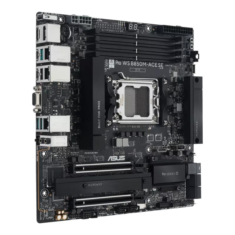ASUS Pro WS B850M-ACE SE AMD Micro-ATX motherboard, with server-grade IPMI management, PCIe 5.0 x 16, PCIe 5.0 M.2, PCIe 5.0 MCIO, U.2 connector, 10Gb