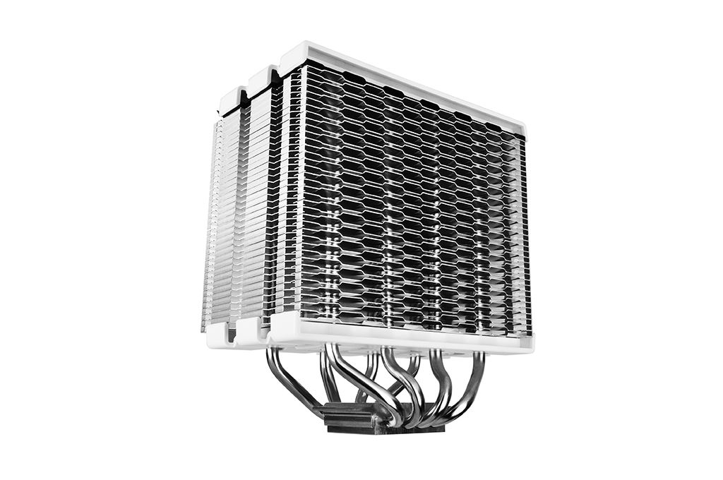 • Ízléses design: Az elegáns fekete és fehér színekkel tervezett hűtő egyszerre praktikus és esztétikus választás minden számítógépházhoz.