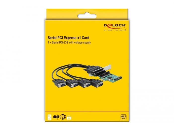 Delock PCI Express x1 kártya > 4 x soros RS-232 tápfeszültséggel (89938)