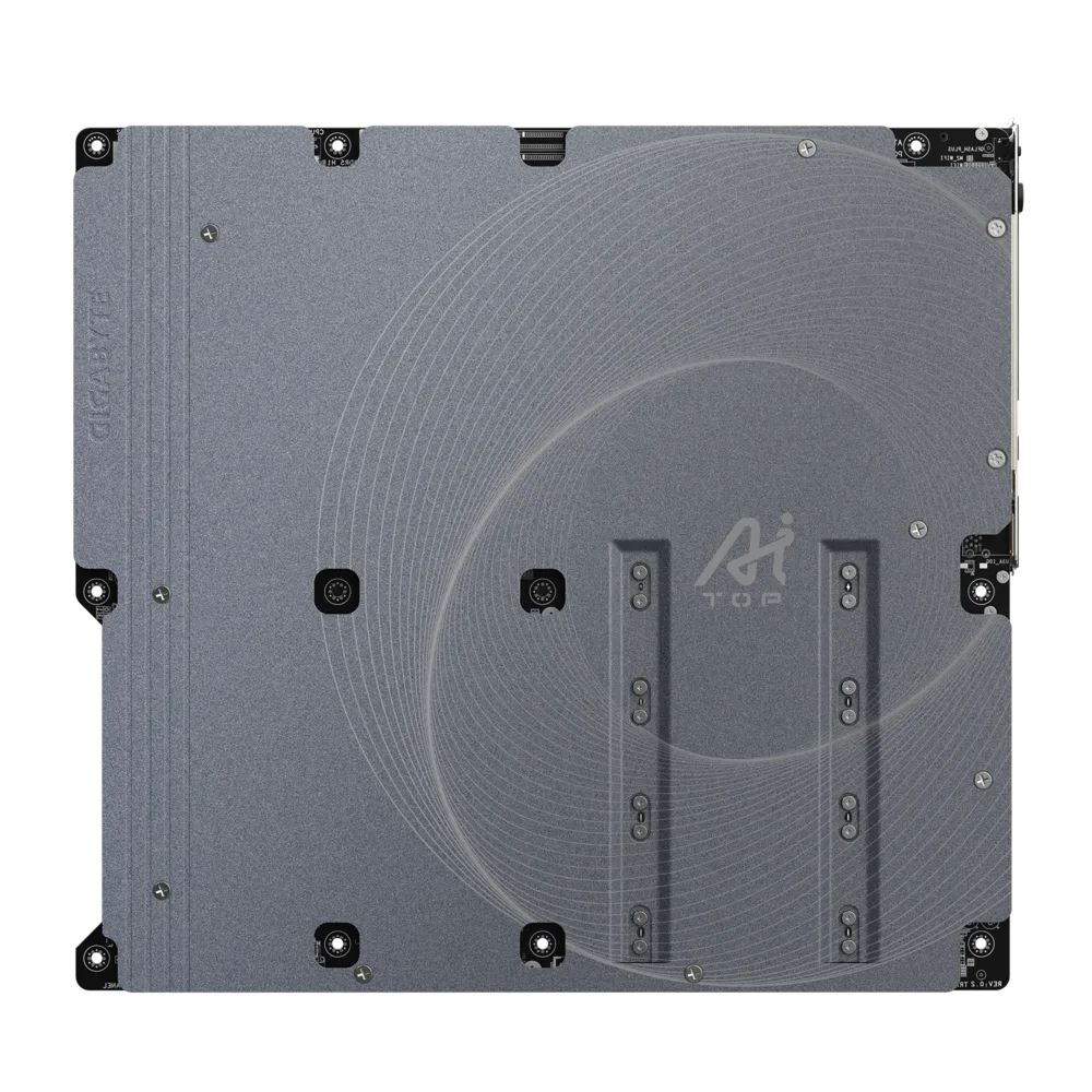 E-ATX méretével a TRX50 AI TOP szilárd és átgondolt tervezést képvisel, amely biztosítja a megfelelő légáramlást, a stabil alkatrész-elhelyezést és a hosszú távú megbízhatóságot. A Gigabyte hűtési megoldásai emellett aktívan támogatják a rendszer stabilitását nagy terhelés mellett is.