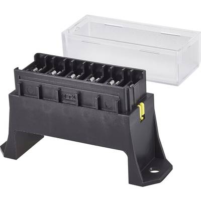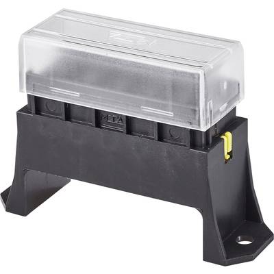 BiztosítéktartóFröccsenő víz ellen védettTörésálló akrilüveg fedélTörésálló, szigetelt akrilüveg fedéllel. Alkalmas motorhoz, autóhoz, lakókocsihoz, hajóhoz, lakóautóhoz, ill. alkalmazható napelemes technikához és szélerőművekhez. Műszaki adatok: Biztosíték: Standard lapos biztosítékok · Csatlakozás: 6,3 mm-es dugó · Csatlakozó (speciális): Alsó · Gyártói szám: 100560 · Méret, hossz: 86 mm · Méret, magasság: 58 mm · Méret, szélesség: 27 mm · Névleges feszültség: 6 ... 36 V · Névleges áram: 30 A · Pólusszám: 6 pólusú · További műszaki adatok: Csatlakozó furat: 5 mm · Csatlakozó: 6,3 mm laposérintkező dugóhoz · Típus: SD-6