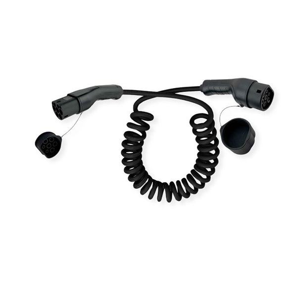 Roline EV Kábel, Elektromos autó töltő kábel, Type2, 3 fázisú, 11 kW, spirál, 7,5m, fekete (19.08.0047-4)