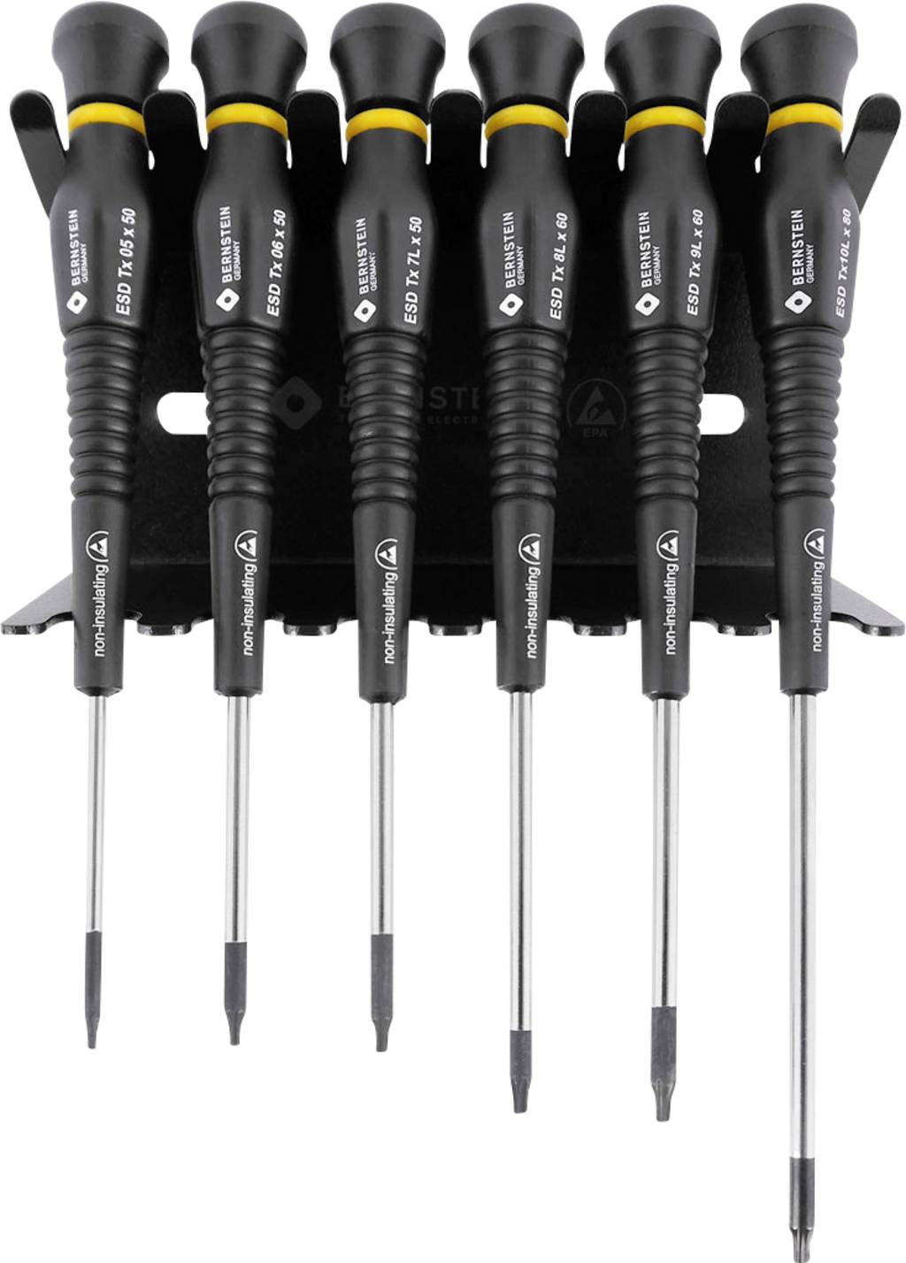 Műszaki adatok: Alkalmazás: ESD · Anyag: Króm-vanádium acél · Anyagjellemző: Krómozott,Edzett,Foszfátozott · Csavarhúzó típus: Csavarhúzó készlet · Elhajtás: TORX