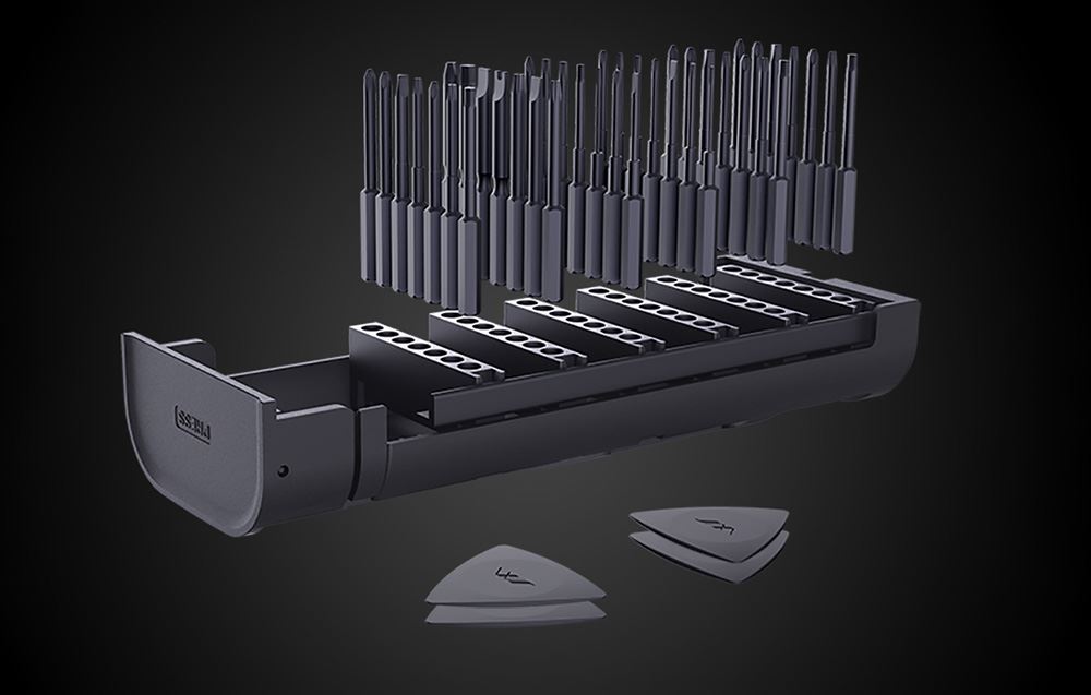 A készletben 42 bitet talál 12 különböző típusban, beleértve lapos, Phillips, háromszögű vagy Y-alakú csavarhúzókat. A szett minden eleme tökéletesen működik bármilyen helyzetben. Segítségükkel például javíthatja a okostelefont, digitális kamerát vagy szemüveget.