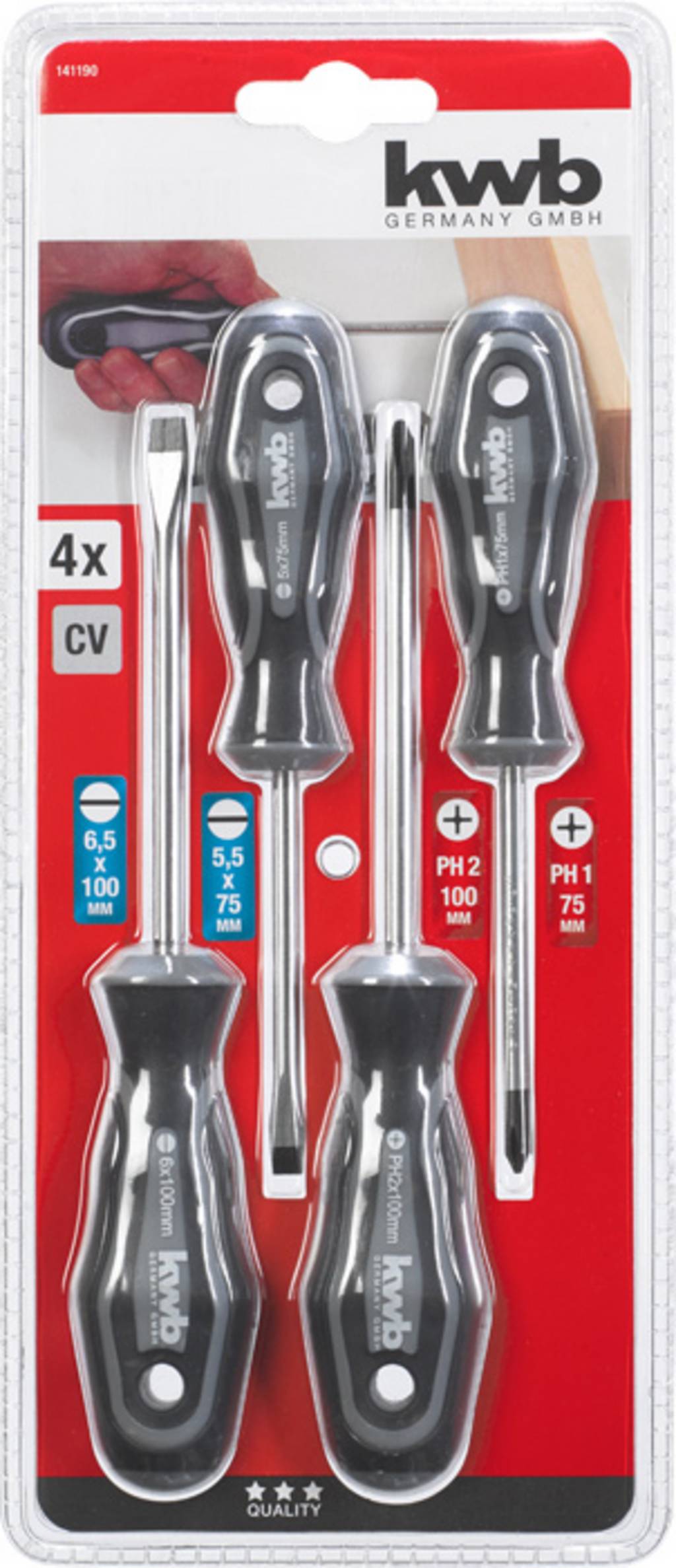 A pengék matt króm-vanádium acélból készültek, ergonomikus 2 komponensű fogantyúkkal a nagy erőátvitel érdekében, és a fogantyúban akasztónyílással. Mágneses hegyekkel, hogy a csavarokat meg lehessen tartani és összeszerelés közben ne essen le. Extra edzett hegyek a hosszú élettartam érdekében.
