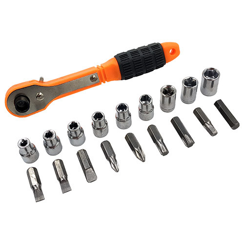 Kisméretű racsnis szerszámkészlet. Irányváltós.