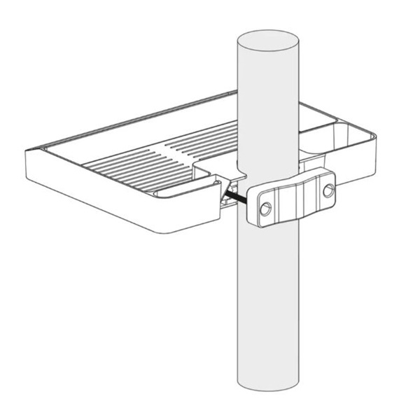 Ez az univerzálisan állítható bilinccsel ellátott, oszlopra szerelhető tárolópolc ideális kiegészítő a 30-48 mm-es (1,2"-1,9" oszlopokkal rendelkező monitortartókhoz, TV-kocsikhoz stb.). A polc hatékony tárolást tesz lehetővé, emellett tartalmaz egy nyílást a telefonnak és egy szerszámtartót is pl. Különböző méretű imbuszkulcsok. A kábelvezetés gondoskodik a tiszta és rendezett megjelenésről.