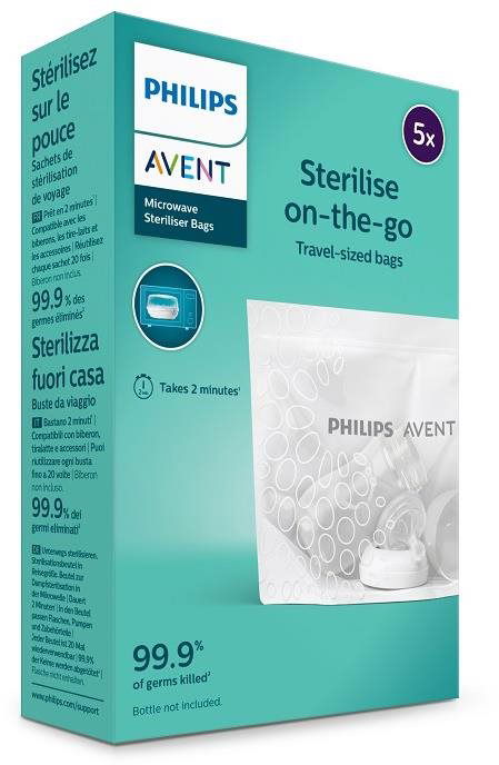 Szeretnéd, ha a baba cumisüvegei és cumijai mindig sterilek és tiszták legyenek? Akkor válaszd a Philips Avent mikrohullámú sterilizáló zacskókat. Egyszerűen tedd be a sterilizálni szükséges tárgyakat a zacskóba, zárd le, és a mikrohullámú sütő mindössze 90 másodperc alatt sterilizálja az összes holmit. Ez idő alatt a káros baktériumok 99,9%-a elpusztul. Ez az egyszerű módszer utazáshoz is ideális. A csomagban 5 darab Philips Avent tasakot kapsz, amelyek mindegyike akár 20-szor is felhasználható. Minden egyes tasakban van egy hely, ahová feljegyezheti, hányszor használtad, így nem kell aggódni amiatt, hogy túl hamar kidobod vagy túl sokáig használod. A Philips Avent tasakok kezelése egyszerű, a biztonságos zónának köszönhetően könnyedén kiveheted őket a mikrohullámú sütőből anélkül, hogy megégetnéd magad.