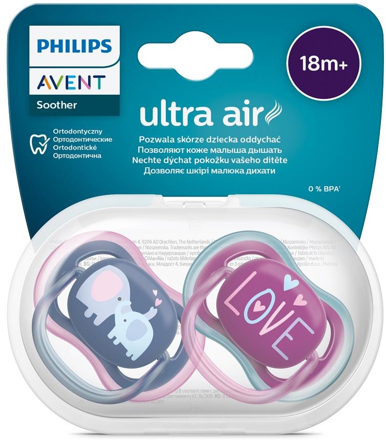 Philips AVENT Ultra Air 18 m+ kislány (elefánt), 2 db cumi - 18 hónapos kortól ajánlott