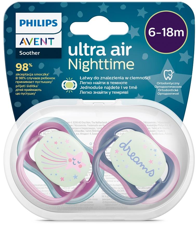 Philips AVENT Ultra Air Nighttime 6-18 éves kislány, 2 db cumi - 6 hónapos kortól ajánlott