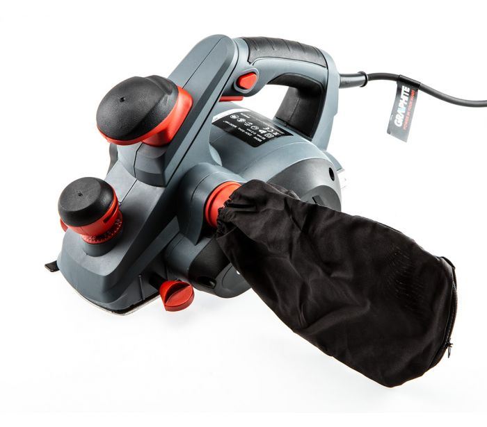 Fa megmunkálására szolgál a GRAPHITE 850 W-os elektromos kézigyalu (kat. sz. 59G678). A szerszámot korszerű formatervezés és ergonómikus formakialakítás jellemzi. Az alumínium talp ellenáll a deformálódásnak. Fogásszélessége 82 mm, forgácsolási mélysége 3 mm. Fogásmélysége horonygyalulásnál (falcolásnál) 0-12 mm. A gép motorja max. 16500 / perc fordulatszám elérését teszi lehetővé. A főmarkolat, a segédmarkolat és a forgácsolási mélységet szabályozó marokcsavar csúszásmentes bevonatának köszönhetően biztos a gyalu fogása. A gyalu fel van szerelve automatikus "parkoló talp” kiengedési megoldással. A forgács nem marad az alumínium talp alatt, mivel automatikusan kidobódik jobb- vagy baloldalra. A három V-alakú horonynak köszönhetően a gyalu alkalmas peremek megmunkálására is. Az elektromos kézigyaluhoz mellékelt tartozékok: porzsák, párhuzamvezető, valamint támaszték ás falcolásvezető. A CE tanúsítvány bizonyítja az európai szabványoknak való megfelelést.