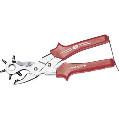 Forgó lyukasztófogó himbás áttétellelLyukak textíliába és műanyagba stancolásáraJellemzők: Német ipari minőség · A himbás áttételnek köszönhetően akár 70%-kal kevesebb erőkifejtés szükséges a hagyományos forgó lyukasztófogóhoz képest. · Krómozott kivitel, lyukasztó-O megjelenítésével és műanyag markolatokkal.Műszaki adatok: Anyag: Króm-vanádium acél · Anyagjellemző: Nikkelezett · Gyártói szám: 10860 · Méret, hossz: 250 mm · Stancolás méret: 2 mm,2.5 mm,3 mm,3.5 mm,4 mm,4.5 mm · Súly: 410 g · Tartalom: 1 db · Típus: Revolver lyukasztó fogó