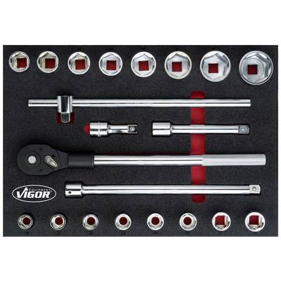 Dugókulcs készlet2K puha habszivacs betét Betét méretei / fiók mérete: L (563 x 393 x 35 mm) VIGOR 2 komponensű puha habszivacs betétek Könnyen tisztítható: folyó víz alatt tisztítható és szárazon A piros bemélyedés miatt azonnal feltűnik a hiányzó szerszámok Minden benne van hely - a tökéletes sorrend Megvédi a szerszámokat, mivel be vannak ágyazva, hogy megakadályozzák azok elcsúszását Minden szerszámnak megvan a maga előre meghatározott helye Olaj- és zsírálló Meghajtás: Négyzet alakú, üreges 20 mm (3/4 hüvelyk) Kimenet: Külső hatszögű Profil szélessége a síkokban : • 19 – 50 Méretek / hossz : 563 mm x 393 mm x 35 mm betétméret / fiókméret: L (563 x 393 mm)Ez a szöveg gépi fordítással készült.Műszaki adatok: Méret, hossz: 563 mm · Méret, szélesség: 393 mm · További műszaki adatok: Szerszámok száma: 21 db