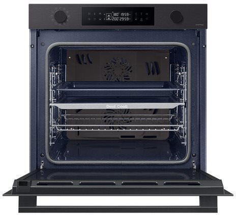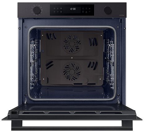 Eme SAMSUNG NV7B44403AB/U3 Dual Cook villanysütő megkönnyíti és élvezetessé teszi a sütést. A felfüggesztett vezetőrácsok megkönnyítik a tepsik mozgását. A katalitikus felület segít eltávolítani a zsírt és szennyeződést a falakról.