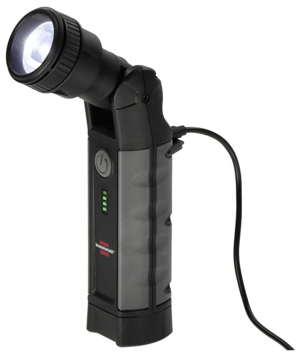 A Brennenstuhl TL 1000 ACW elemes LED-es zseblámpa egy rendkívül robusztus ellenőrző lámpa cserélhető 3,7V/2,5Ah Li-ion akkumulátorral és töltésjelzővel a különféle környezetek megvilágítására. Ez a sokoldalú, IP54 védettségi osztályú LED-es munkalámpa három különböző kapcsolási fokozattal (100%-50%-25%) és folyamatos fókuszálással rendelkezik, hogy minden igényt kielégítsen. Az ellenőrző lámpa kényelmesen tölthető az USB C töltő interfészen keresztül a mellékelt USB C töltőkábellel vagy a különálló vezeték nélküli töltőpárnán keresztül (nem tartozék). A gumírozott felületnek köszönhetően a LED akkumulátoros műhelylámpa biztosítja a legjobb fogást.