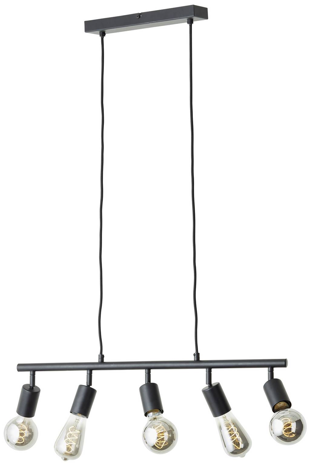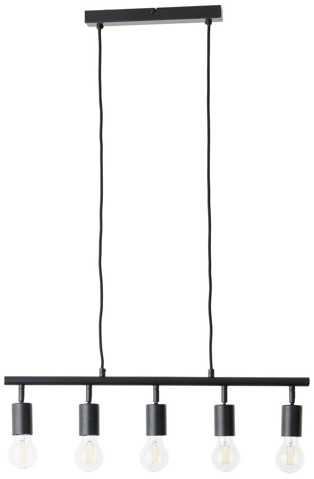 Műszaki adatok: 2021-es energiahatékonysági osztályok: n.rel. · Anyag: Fém · Foglalat: E27 · Fényforrások száma: 5 · Fényforrással: Nem · Gyártói szín: Fekete (matt) · Inda hossza (max.): 90 cm · Lámpa jellemzők: Rövidíthető · Méret, magasság: 900 mm · Méret, mélység: 60 mm · Méret, szélesség: 630 mm · Súly: 1089 g · Teljesítmény: 28 W · Védelmi osztály: I · Védelmi típus: IP20 · Üzemi feszültség: 230 V