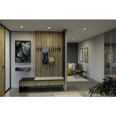 EBP Areo VariFit 3000K 118mm 6,5W szVariFit - rugalmas beépítés folyamatosan állítható szorítórugóvalintegrált LED fényforrássalkönnyen kezelhető műanyagból készült230V közvetlen csatlakozáshozIP védettség: IP44 - fröccsenésállóA 6,5 W teljesítményű, kerek, fekete és 118 mm-es Areo VariFit LED-es süllyesztett panel ideális nappali, hálószoba vagy konyha alapvilágítására. A panel meleg fehér fénye egyenletes és kiterjedt megvilágítást biztosít a helyiségben. A rugalmas VariFit technológiának köszönhetően a szorítórugók fokozatmentesen állíthatók 50 és 85 mm között a beépítéshez. Ez azt jelenti, hogy a panel a meglévő és az új furatokba is beépíthető.Ez a szöveg gépi fordítással készült.Műszaki adatok: 2021-es energiahatékonysági osztályok: n.rel. · Fényforrások száma: 1 · Fényforrással: Igen · Fényszín: 3000 K · Fényszín (fényforrás): Melegfehér · Fényáram összesen: 850 lm · Fényáram/fényforrás (lumen): 850 lm · Gyártói szín: Fekete · Helyiség: Dolgozószoba, Fürdőszoba, Nedves helyiség, Járda megvilágítás, Ház/garázs, Gyerekszoba, Konyha, Hálószoba, Hangulatos kertvilágítás, Terasz/ülősarok, Nappali/étkező · Kivitel (lámpa): Kerek · Méret, magasság: 12 mm · Stílus: Modern/dizájn · Teljesítmény fényforrásonként: 6.5 W · Védelmi osztály: II · Védelmi típus: IP44 (mennyezetre szerelhető) · Átmérő: 118 mm · Üzemi feszültség: 230 V