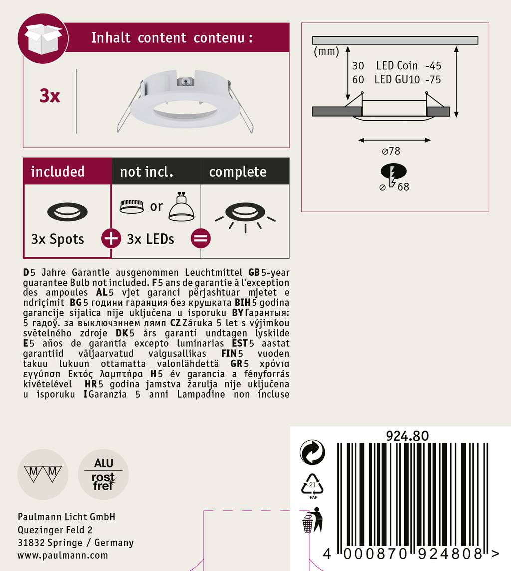 Paulmann 92480 EBL Choose Beépítő gyűrű 3 részes készlet 10 W Fehér (matt)