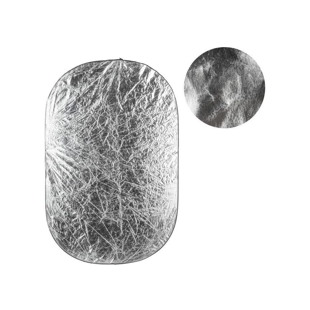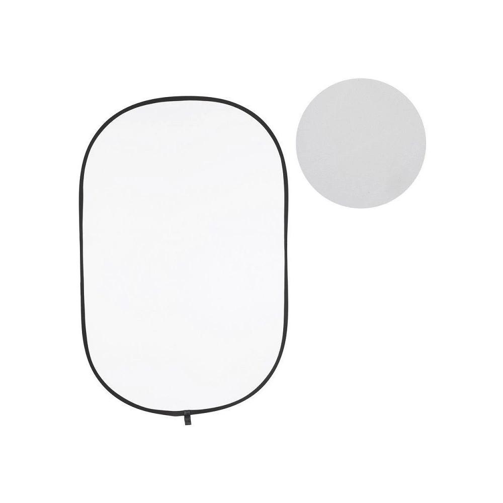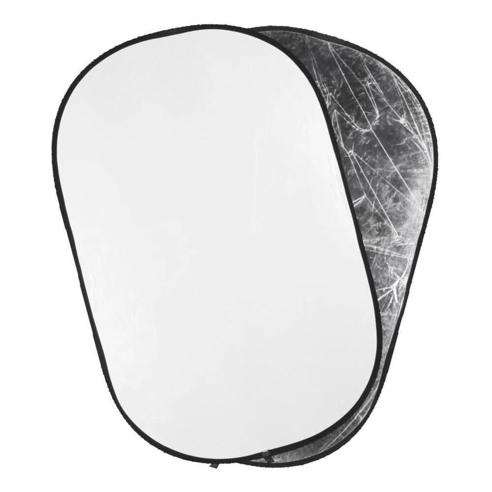 Az ezüst-fehér reflektor stúdióban és szabadban is hasznos termék. Lehetővé teszi a lámpa vagy a napfény visszaverését és az árnyékos helyek megvilágítását. Két fehér-ezüst vászonnal van felszerelve, amelyek mindegyike más-más jellemzőt biztosít a visszavert fénynek.