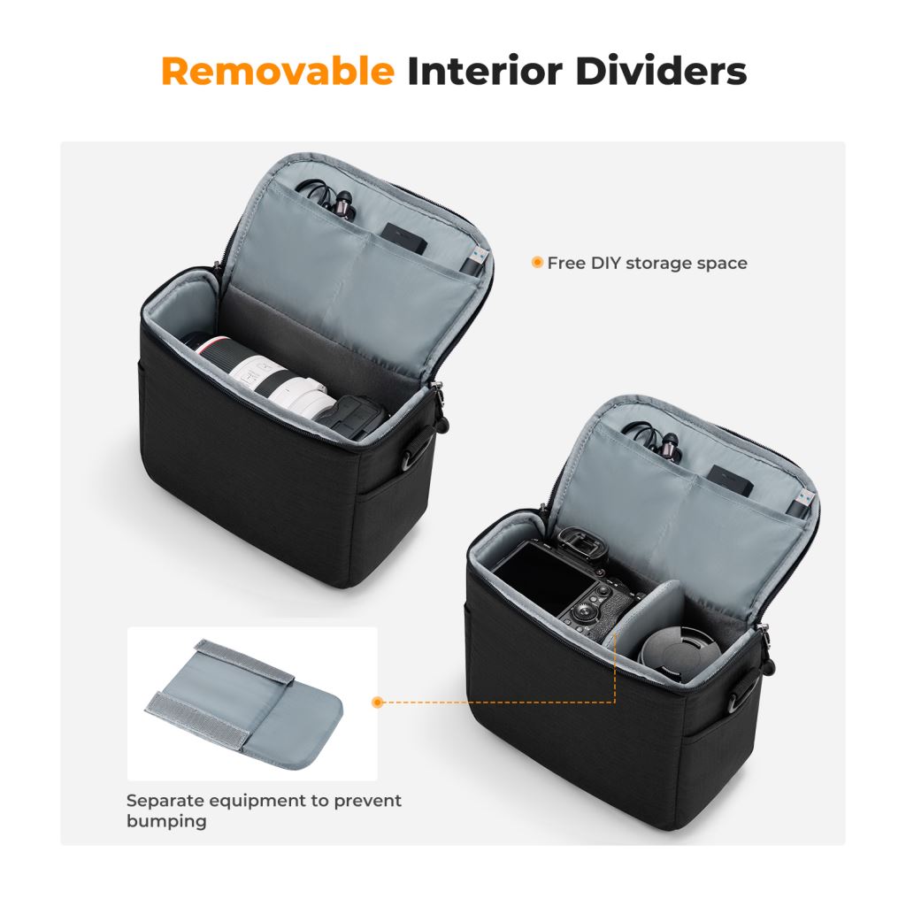 A K&F Concept oldaltáska rengeteg helyet kínál a személyes tárgyak számára, valamint külön rekeszekkel és zsebekkel rendelkezik a biztonságos tárolás érdekében. A fő rekesz tágas, így könnyedén elfér benne minden szükséges kellék, mint például egy laptop, könyvek, és egyéb munkaeszközök. Emellett a táska belső kialakítása lehetővé teszi a tárgyak átlátható rendszerezését, hogy mindig könnyen hozzáférhessünk a szükséges dolgokhoz.