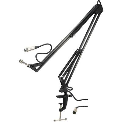Dönthető stúdió mikrofonállványAsztalra rögzíthető5 m XLR kábellelTerhelhető: 1,5 kg-igPraktikus dönthető kar hangstúdiókba, podcasthoz, interjúkhoz stb.Jellemzők: 16 mm (5/8") menetes csatlakozó · Könnyen beállítható rugós tartóval · Kar hossza: kb. 50 cm.Műszaki adatok: Külső menet: 5/8" · Méret, hossz: 50 cm · Szín: Fekete · Termék típus: Asztali mikrofonállványSzállítás tartalma: 5 m XLR-M/XLR-F kábel ás csíptetős tartó.