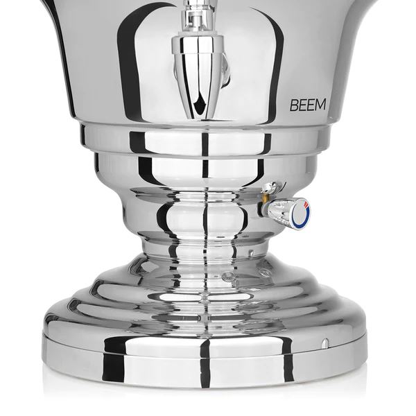 Impozáns megjelenés, számos funkcióval párosulva, igazi látványosság az ön helyiségeiben. Lehetővé teszi a professzionális teakészítést - még különösen nagy vendégcsoportok számára is. A 15 literes, bőséges űrtartalom, a nagy teljes teljesítmény és az energiatakarékos előkészítés révén ez a szamovár ideális professzionális és kereskedelmi felhasználásra.