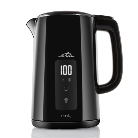 Az ETA Emily vízforraló kéthéjú kivitelben nemcsak funkcionális, hanem dizájn kiegészítője is lesz konyhájának. A jól látható LED kijelzőn már a forralás közben is nyomon követhető a víz hőmérséklete, melyet az érintőgombok segítségével be is állíthat 40 és 100 °C között.