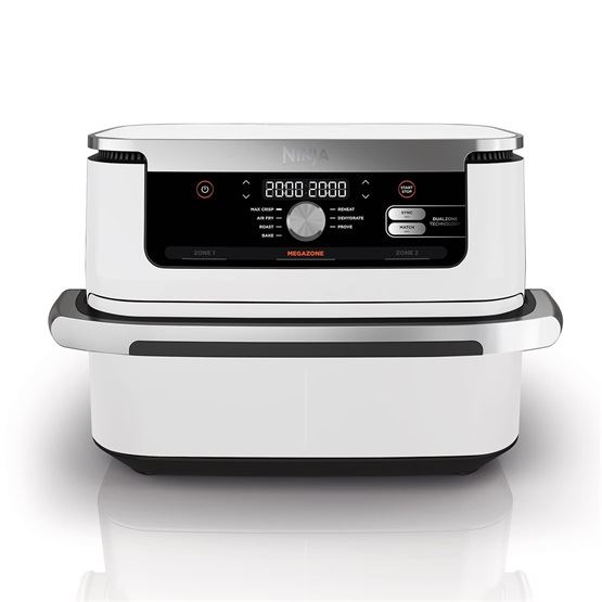 A Ninja® AF400EUWH fritőz 2 független főzőzónával rendelkezik, hogy támogassa a forrólevegős sütő használatának rugalmasságát. Az extra nagy, 9,5 literes űrtartalom akár 8 személy számára is alkalmas. Csak egy kis ízelítő - akár 1,4 kg sült krumplit vagy 2 kg csirkét is meg tud sütni.