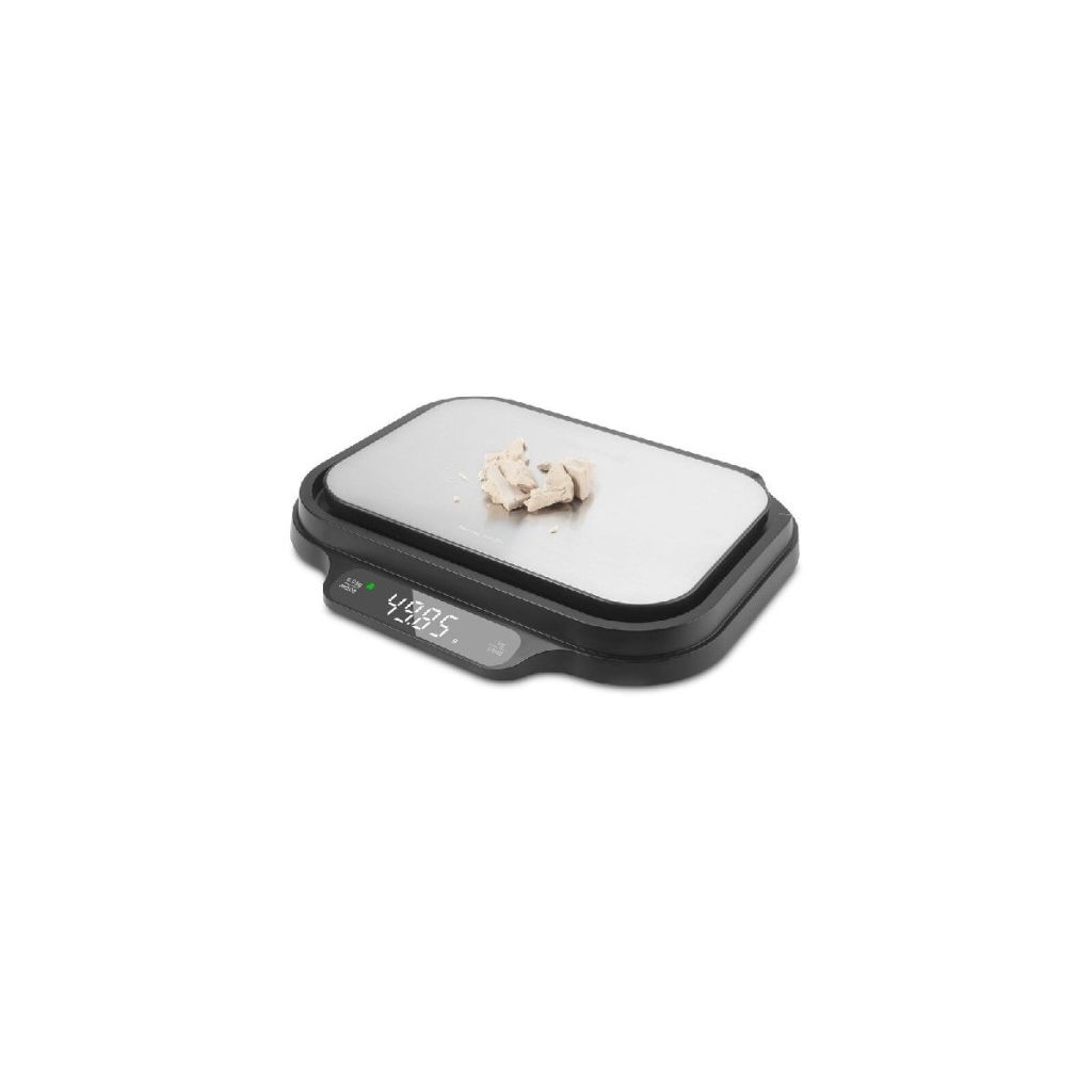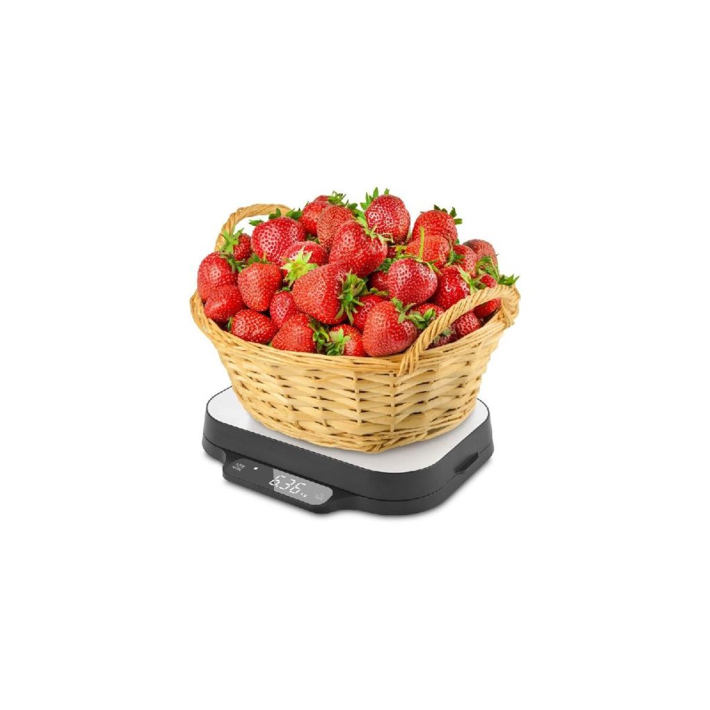 A mérleg praktikus funkciókat kínál a kényelmes, mindennapi használathoz – multifunkciós fedelét akár tálként is használhatja, a TARE funkció és a súlyrögzítési lehetőség pedig megkönnyíti a több hozzávalóval való munkát. A fehér LED háttérvilágítású, áttekinthető kijelző és az érintésérzékeny panel egyszerű kezelést biztosítanak. A mérés lehetséges g (kg), oz és ml mértékegységekben, így könnyen igazodik az Ön igényeihez.