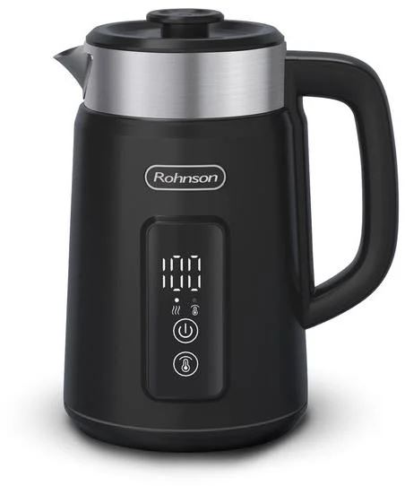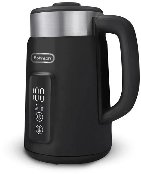 Az elegáns Rohnson gyorsforraló nemcsak az előállításánál felhasznált anyagok ellenállóságával büszkélkedhet, hanem kábeltároló rekesszel és forgótalppal is. A vízforraló tetszőleges szögből helyezhető a forgótalpra. Előnye a hőszabályozás funkció, így az egész család által kedvelt forró italok készítése nem jelent gondot. Az érintésvezérlő gomboknak köszönhetően a vízforraló kanna vezérlése hatékony és intuitív, a beállításokhoz csak egyetlen ujjra van szükség. A hangjelzés is hasznos funkció, amely a forralás befejeződését jelzi. Ha előfordul, hogy elfeledkezel a vízről, nem lesz muszáj újonnan felmelegíteni. A vízhőmérsékletet a vízforraló fenntartja bizonyos ideig a melegítés után. A forralás megkezdésekor LED világítás aktiválódik, amely mutatja, hogy a vízforraló üzembe lépett. A kijelző pontos információt kínál a víz hőmérsékletéről használat közben.