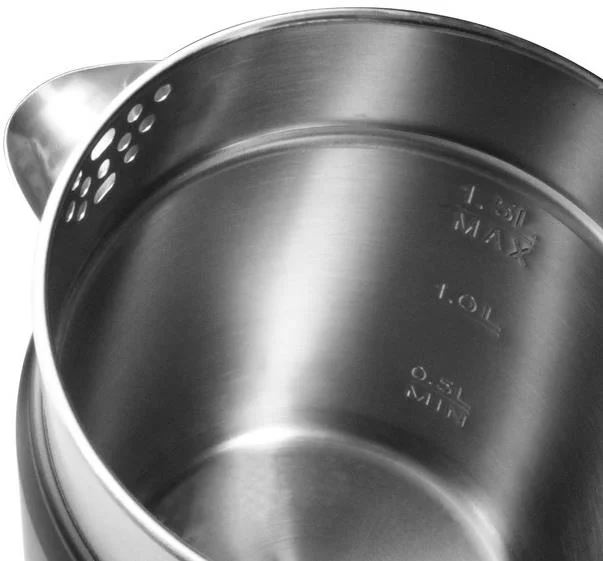 A gyártó komoly figyelmet fordított a vízforraló maximális biztonságára. A vizforraló biztonságát és hatékony hőtartását biztosítja a gyártásnál alkalmazott dupla falú kialakítás. A víz melegítésekor a külső felület hőmérséklete nem ér el magas értékeket, ezért nem kell aggódnod, hogy megégeted a kezed. A vízforraló természetesen rendelkezik olyan biztonsági funkciókkal, mint például automatikus kikapcsolás a vízforraló eltávolításakor forralás közben, túl kevés víz esetén, a forráspont elérésekor. A fűtőspirál a vízforraló aljában helyezkedik el, így a vízkő kialakulásának lehetősége nem áll fenn.