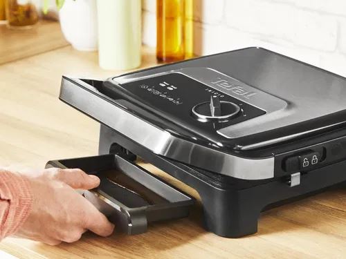 • Egyszerű tárolás: Függőleges tárolásnak, a kábeltartónak és a grilllemez zárjának köszönhetően helytakarékos kialakítású. Könnyedén elfér a konyhájában!