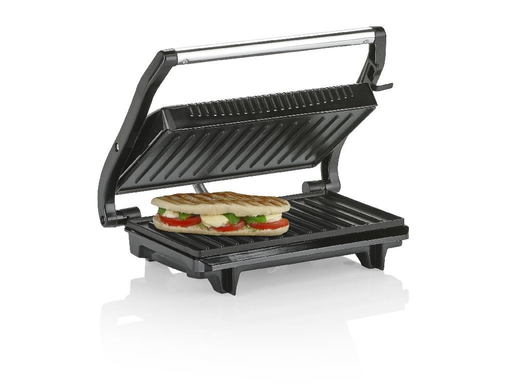 Tulajdonságok: Kompakt kialakításával dobogtatja meg szívét a TRISTAR GR-2846 kontaktgrill. Fényűző megjelenésével, rozsdamentes acél fedelével méltó szereplője lehet háztartásának. Készíthető segítségével hús, hal vagy akár panini (olaszok kedvenc szendvicse, eredetileg focaccia kenyérbe hajtogatott sonka, mozarella és paradicsom felhasználásával készül, melyet átgrilleznek a még jobb ízhatás érdekében). A tapadásmentes bevonatnak köszönhetően, biztos sikerre számíthat ismerősei körében.