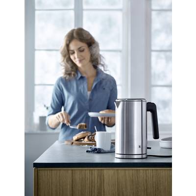 WMF Lono vízforraló, 1,6 lErőteljes 2400 WŰrtartalom 1,6 lCromargan® mattA Cromargan® teljesen rozsdamentes acélból készült tok a szálcsiszolt felületeket magasfényű elemekkel ötvözi. Ez a kiváló minőségű, vezeték nélküli vízforraló kapacitása 1,6Liter. A vízszintjelző külső és jól látható. 2400 wattjával pillanatok alatt felforralja a vizet. A rejtett rozsdamentes acél fűtőelem kis mennyiségű víz felmelegítését teszi lehetővé, és megkönnyíti a tisztítást. A különálló készülékalap elrejti a beépített kábeltekercselőt. A szárazonfutás és túlmelegedés elleni védelem, az automatikus sütési leállítás és a fedélzár garantálja a szükséges biztonságot.Ez a szöveg gépi fordítással készült.Jellemzők: Cromargan® mattErőteljes 2400 wattŰrtartalom 1,6 lEltakart nemesacél fűtőelemKívül elhelyezkedő vízszint kijelzőVezeték nélküli vízforraló külön készüléktalppal, kábeltekerccselEgy kézzel nyitható fedél gombnyomásraKivehető, mosható meszes vízszűrőMagas szintű biztonság a szárazonfutás és a túlmelegedés elleni védelemnek köszönhetőenAutomatikus sütési leállítás és fedélzárMűszaki adatok: Anyag: Nemesacél · Gyártói szín: Kromargán · Konyhagép jellemzők: Zsinór nélküli, Túlhevülés elleni védelem · Méret, hossz: 240 mm · Méret, magasság: 265 mm · Méret, szélesség: 170 mm · Súly: 1.44 kg · Tartalom: 1.6 l · Teljesítmény: 2400 WSzállítás tartalma: Vízforraló, Használati útmutató