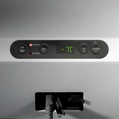 Kompresszoros hűtőláda MCF32 12/24/230 V31 literKönnyű elpárologtató házLevehető fedélHőmérséklettartomány -10 ... +10°CDigitális kijelzőBeltéri világításHely egy 1,5 literes palack számáraA Mobicool MCF hőmérséklet-tartománya +10 ° C és –10 ° C között áll rendelkezésre, és a célhőmérséklet gyorsan elérhető. Az egyszerű felhasználói felület és a digitális hőmérséklet kijelző lehetővé teszi a kényelmes hűtést pontos hőmérsékleten. A hermetikusan lezárt, kompakt kompresszor egység kiváló hűtési teljesítményt biztosít, a LED belső világítás és a kivehető burkolat további pluszt jelent minden felhasználó számára. A kompakt alapterület és az alacsony magasság teszi az elektromos hűtőkamrát tökéletes megoldássá még szűk helyeken is, például átalakított kisteherautó vagy az autó csomagtartója számára.Műszaki adatok: Energiahatékonysági osztály: D (A - G) · Kapacitás: 31 l · Méret, magasság: 407 mm · Méret, mélység: 365 mm · Méret, szélesség: 584 mm · Működési elv (hűtőláda): Kompresszor · Szín: Kék,Fehér · Súly: 11.4 kg · Termék típus: Hűtőláda · Üzemi feszültség: 12 V,24 V,230 V