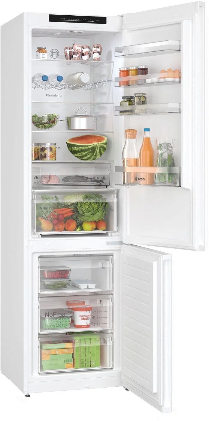 Fő funkció a a kombinált BOSCH KGN392WDF Serie 4 hűtő tekintetében a Nofrost rendszer, amely megakadályozza a jég kialakulását, így nem kell bajlódnod a leolvasztással. Az egyik fő funkció a a kombinált BOSCH KGN392WDF Serie 4 hűtő tekintetében a prakitkus Total NoFrost rendszer, amely megakadályozza a lejegesedést, és megkímél a leolvasztás fáradalmaitól. Amikor újabb élelmiszereket helyezel bele, a hűtő és mélyhűtő hirtelen csökkenti a hőmérsékletet, és szinte azonnal lehűt mindent. A friss gyümölcs, zöldség vagy sajt tárolására a jól kihasználható hűtőszekrény az optimális feltételeket a Zero Zone, azaz csökkentett hőmérsékletű tér segítségével biztosítja. Két hűtőrendszerből áll, egy a hűtőhöz, és egy a mélyhűtőhöz. Nyilvánvalóan a praktikus Bosch hűtőszekrény erőteljes LED-világítást kapott azért, hogy ha keresel valamit, egyből megtaláld. Működés ellenőrzése és beállítások egyszerűen lehetséges a jól áttekinthető kijelzőn.