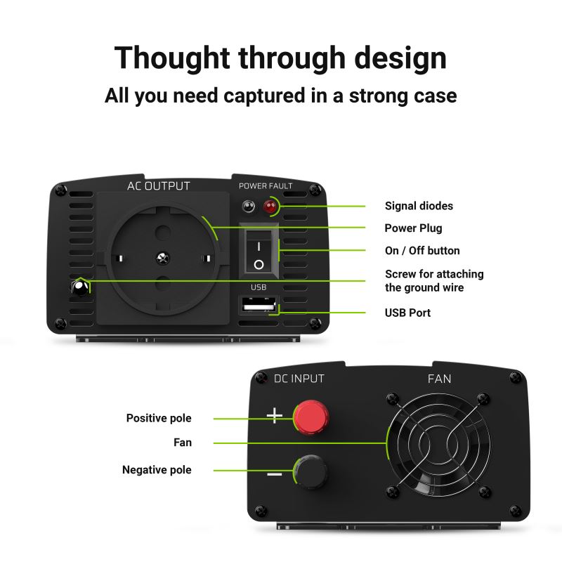 Green Cell feszültség átalakító 24V - 230V 300W/600W (INV02DE)