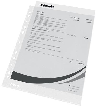 - lefűzhető tasak mindennapos használatra- az univerzális lefűzőrésznek köszönhetően iratrendezőkben és gyűrűskönyvekben is használható- narancsos felületű, 35 mikron vastag, újrahasznosítható PP alapanyag- a 11 lefűzőlyuknak köszönhetően bármilyen iratrendezőben, gyűrűskönyvben használható - felül nyitott, melynek köszönhetően a dokumentumok könnyen kiemelhetők a tasakból akár magában az iratrendezőben is