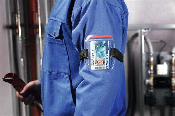 Biztonsági kártyatartó 1 kártya számára, karra erősíthető, mely gyors azonosítást tesz lehetővé-felhasználási terület: bel- és kültéri használatra egyaránt alkalmas, pl. repülőtéri vagy raktári dolgozók számára-1 db kártyához-fekvő formátomú kártyatartó-UV- és vízálló--20 °C-ig ellenáll a hidegnek-műanyag-zip nyitás-tépőzáras rögzítés-anyag: műanyag-rögzítőpánt átmérője 7-18 cm között állítható-belső méretek: 90 x 54 mm (szé x ma)-külső méretek: 110 x 100 mm (szé x ma)