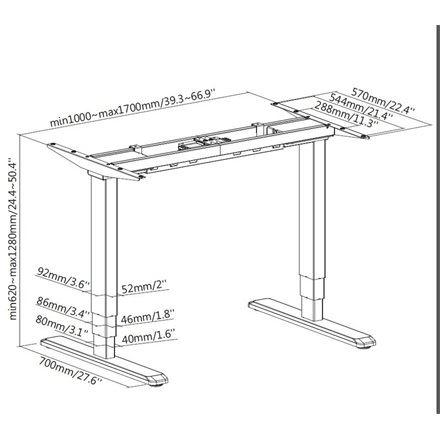 A felhasználók ízlésének és igényeinek megfelelően a keret szélessége is állítható, így különböző méretű asztallappal párosítható. A strapabíró acél konstrukció biztosítja a keret hosszú élettartamát és stabilitását, amely akár 100 kg-os terhelést is elbír.