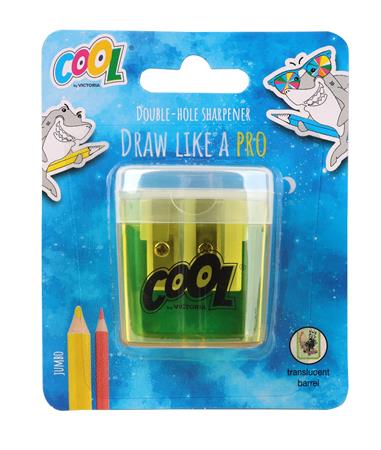 -kétlyukú, két különböző ceruzavastagsághoz is használható (normál, jumbo)-műanyag test-fém pengével-könnyen üríthető tartállyal-vegyes színekben, a szín nem választhatóGyártó/első EU forgalmazó elérhetősége: Corwell Kft2120 Dunakeszi, Pallag utca [email protected]://victoriaoffice.euermekek/cool-by-victoria