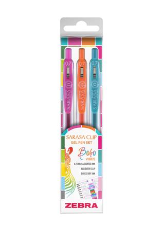 Zebra Zseléstoll készlet, 0,33 mm, nyomógombos, "Sarasa Clip Boho Vibes", 3 különböző szín (TZ99432)