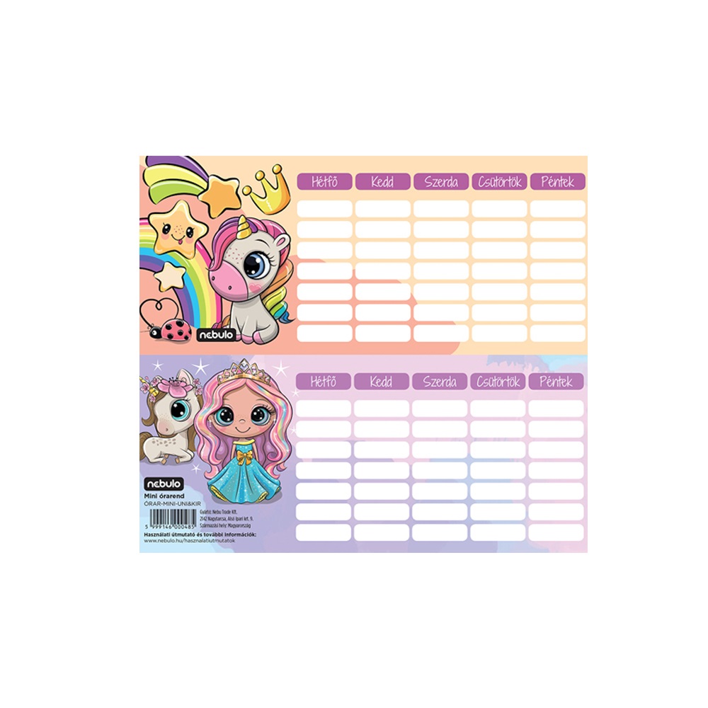 Nebuló Órarend egylapos Uni/Kir, 25 db/csomag, (ÓRAR-MINI-UNI&KIR)
