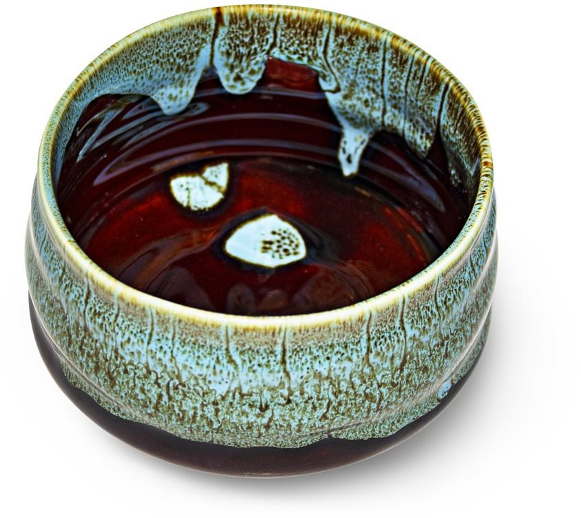 A készletben chawan, chashaku, chasen és tartó található a teaecsetre.