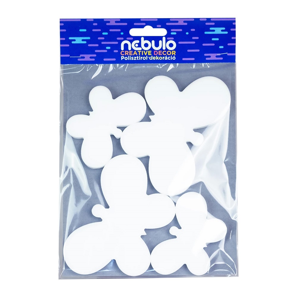 Hungarocell anyagból készült dekoráció pillangó formákban, 15x25 cm méretben. 4 db/csomag