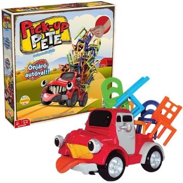 Indulhat a fergeteges móka? A szabály egyszerű, a játékosoknak székeket kell felpakolniuk a mozgó teherautóra, ám a hely szűkös, így csak tornyot építve fér fel minden bútordarab a platóra. De vajon egyben marad az óriási halom? A játékot egyszerre 2-4 játékos játszhatja. Az előkészület során minden játékos magához veszi az összes széket egy-egy választott színből, így mindenki összesen 6-6 darab ülőalkalmatosságot próbál majd ráhelyezni a teherautó platójára, miközben a kocsi köröket ír le a földön vagy az asztalon. A játékosok sorra próbálnak meg egy-egy újabb székeket felhelyezni, amikor hozzájuk érkezik Pete. Az első szék számára négy kis mélyedés biztosít stabilitást, a többi szék sorsa viszont már csak a játékosokon és a fizika törvényein múlik. Ha egy óvatlan mozdulat során a székek leesnek, a játékos kiesik a játékból, a leesett székeket pedig eltakarítja Pete útjából. Az nyer, aki előbb felpakolja mind a hat székét, vagy utolsóként marad játékban. A Pick-Up Pete társasjáték az egyszerű szabályok miatt akár már óvodás kortól játszható.