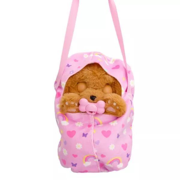 A kutyus be tudja csukni a szemét és aranyos hangokat hallat, ha pedig elszomorodna, a barna kis jószág nyakában egy csontocska alakú cumi van, amivel megnyugtatható az állatka.
